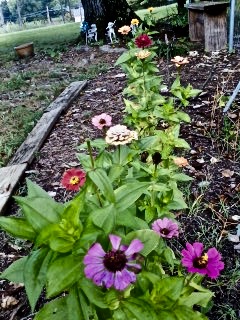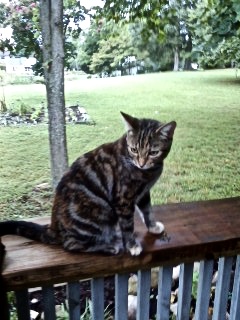 Here are some wet flowers, and Misu waiting on the front porch for Avdi to return.