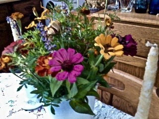 Here are both wild and cultivated flowers, and Misu overseeing.