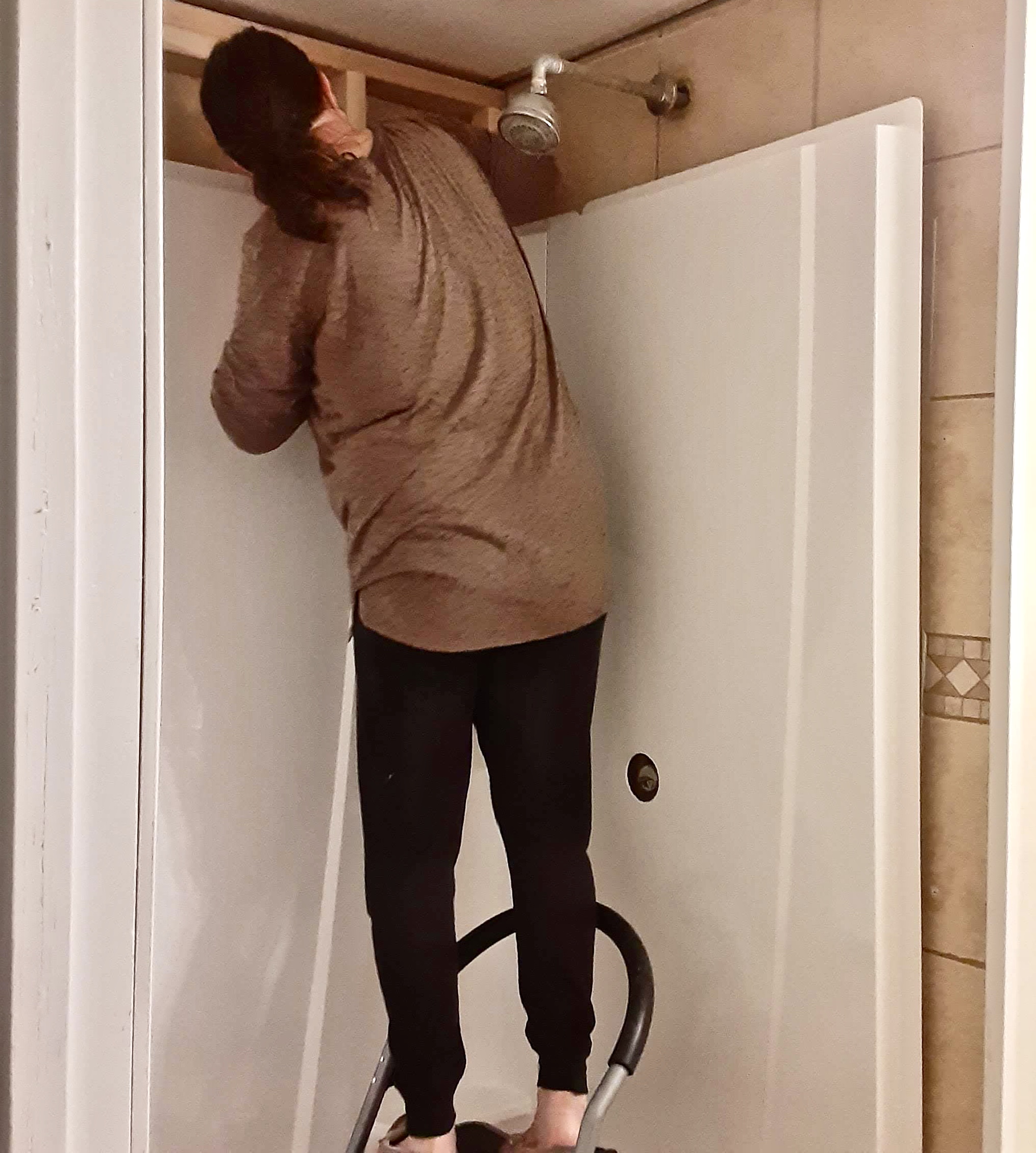Of course E showed off her impressive shower install. Just a few tweaks remain. Misu is so blasé now, she just sleeps through it all. It almost feels like back to a normal erev. I took photos of Avdi from so many angles to make up for all the times I don’t get to see him.