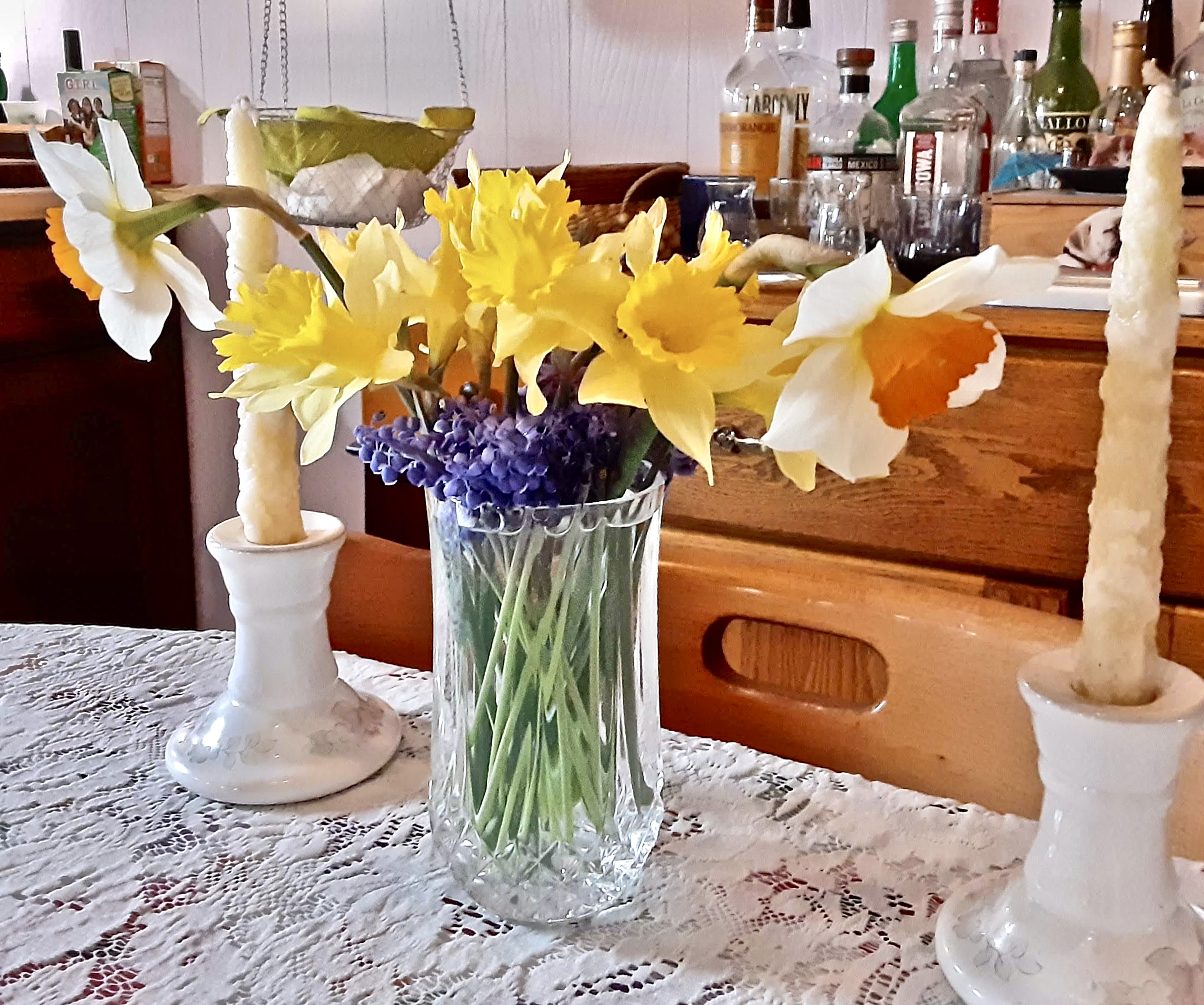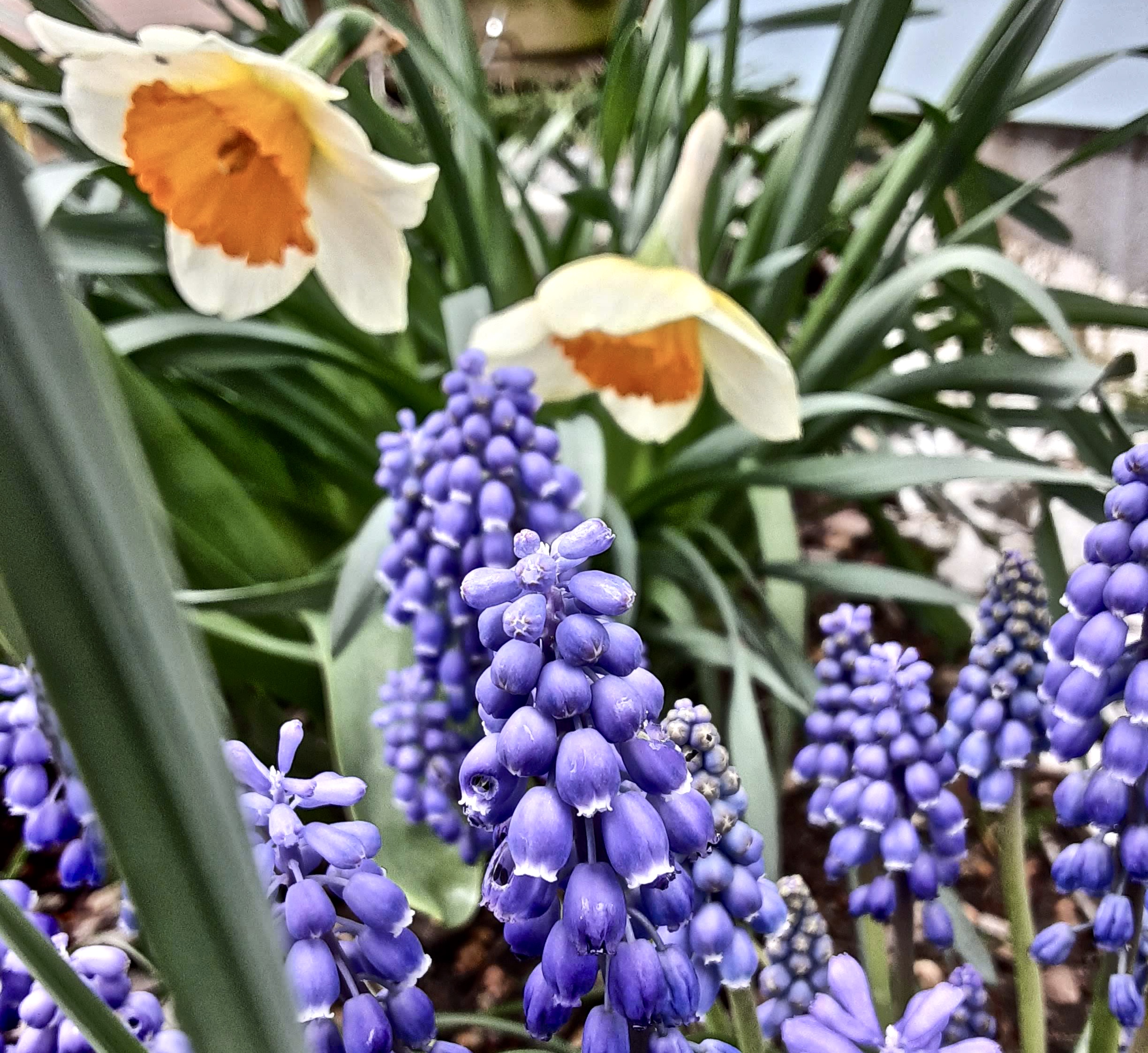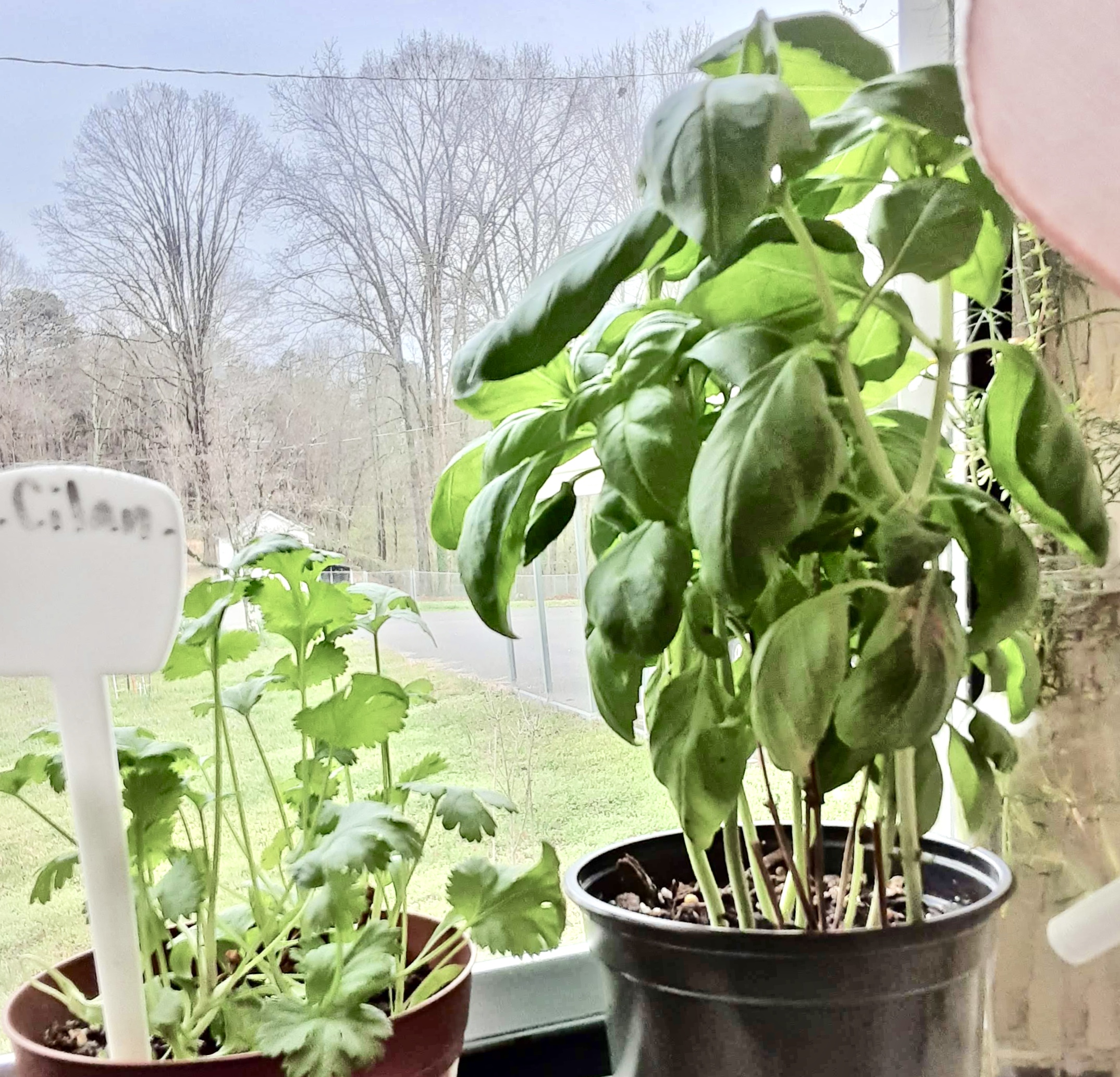 I forgot, in all the “excitement”, it turned spring (yesterday or today, depending on who you believe). Happy (a debatable term) Spring! After temps in the 80s and more rain, there’s no doubt about it. There are violets in every hue, and several perennials starting to bloom. Also, my peas and other veggies are coming up!
