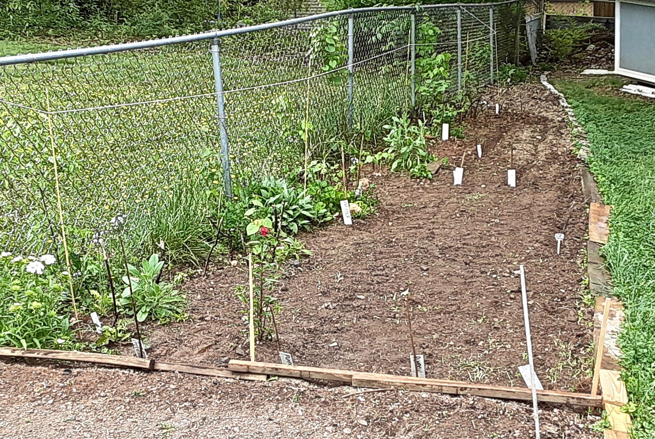 Two days after our second shots, E is feeling the effects more than I am, but all in all, not too bad. I decided to just ignore mine and work in the garden. Skunkbunny was back, just mowing clover a few feet away from me, without a care in the world. I got the next section of fence bed sown with miscellaneous leftover veg and flower seeds and seedlings. I’m getting closer to finishing off the main garden jobs, so I can turn my attention to sorting files and belongings.