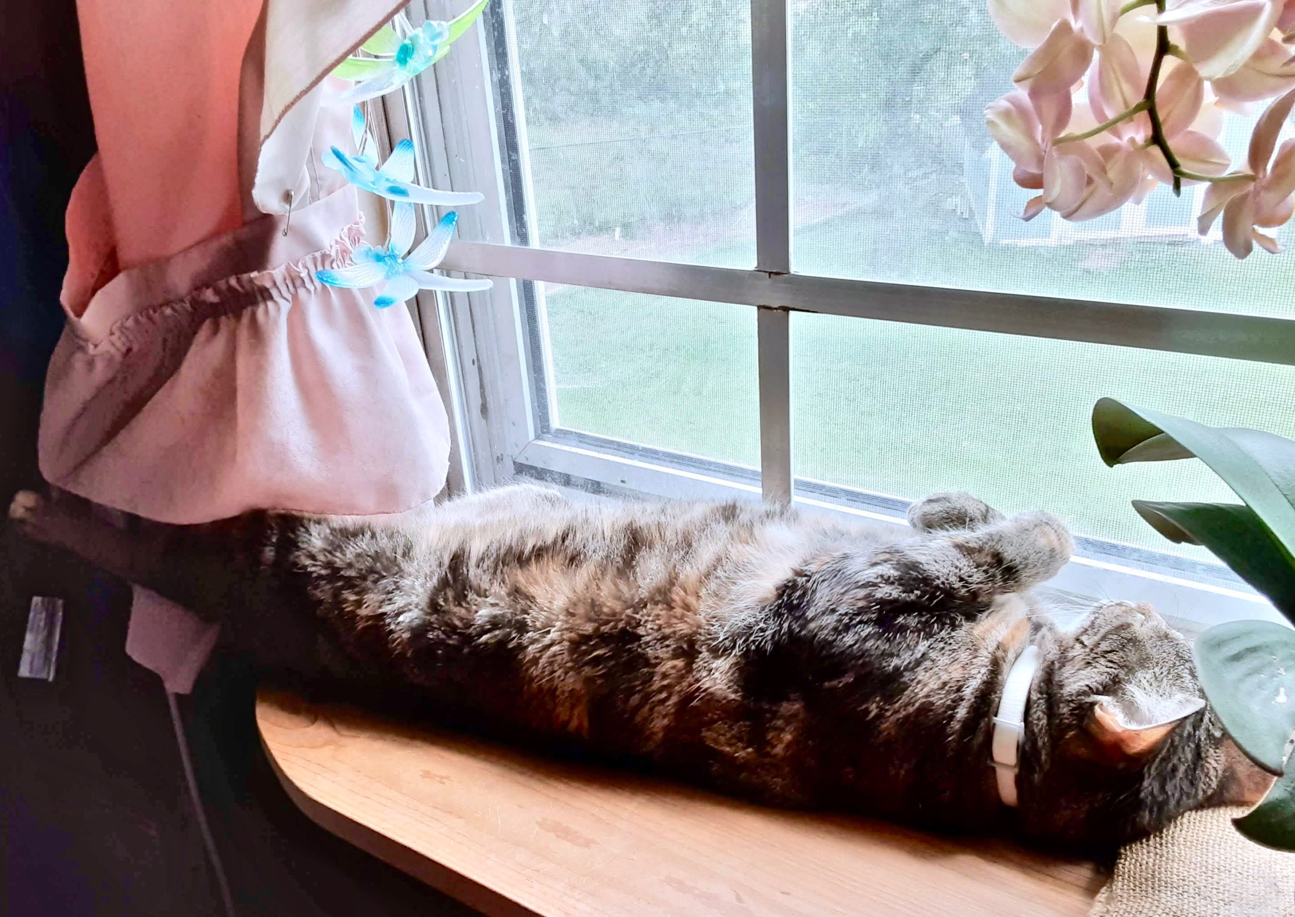 Misu seems to be feeling under the weather, too. She’ll be happy to see “her boy” tomorrow, as will I. Here she is relaxing on her windowsill. It doesn’t get much more chill than this.