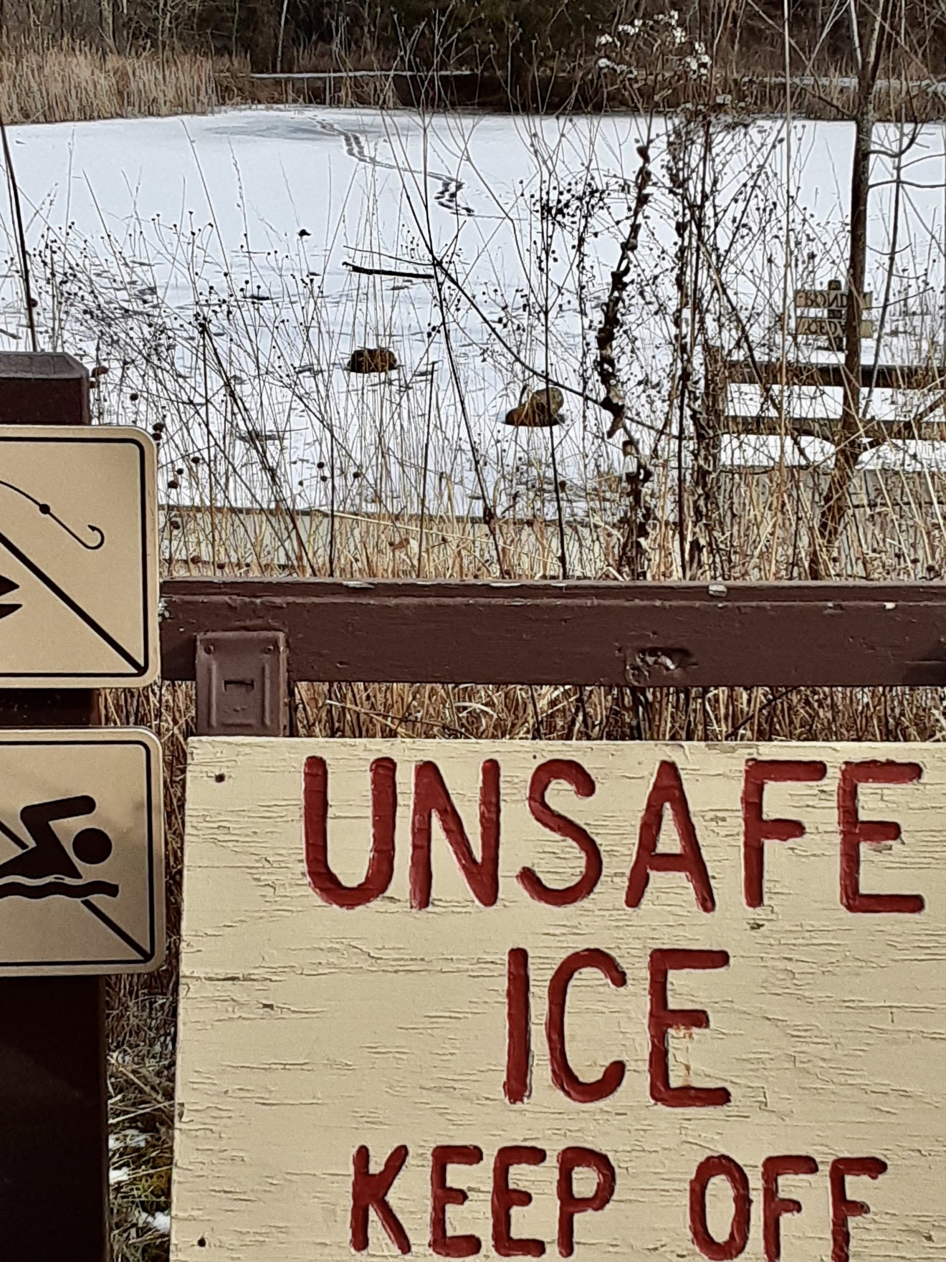 It was deceptively springlike, after a long bout of Ice Age, so we thought a hike would be pleasant. HA!