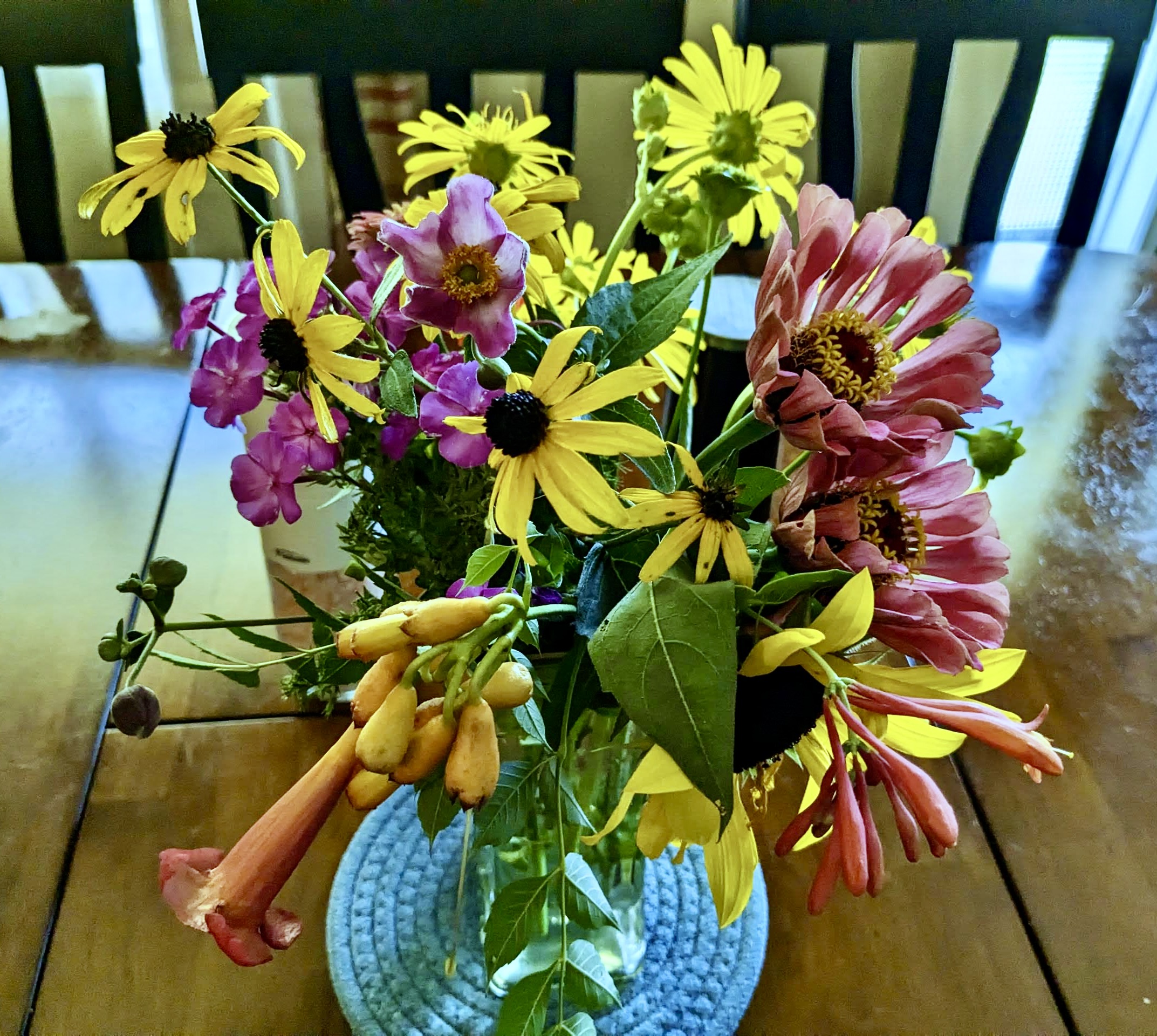 Erev Shabbat dinner was pleasant and conflict-free. Jess joined us and it was a full house. I incorporated lots of garden veggies into the meal. S even tried and liked some of the food I had made (not veggies)!